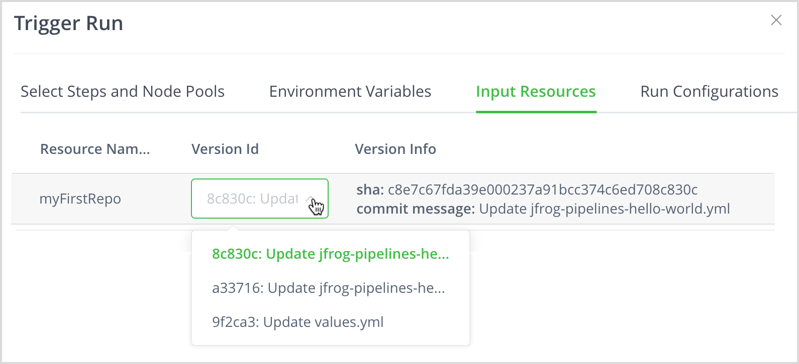 的输入资源2022世界杯阿根廷预选赛赛程标签列出了管道DSL中的所有输入资源。2022世界杯阿根廷预选赛赛程对于列出的每个资源,您可以选择要用于运行的资源版本Id。