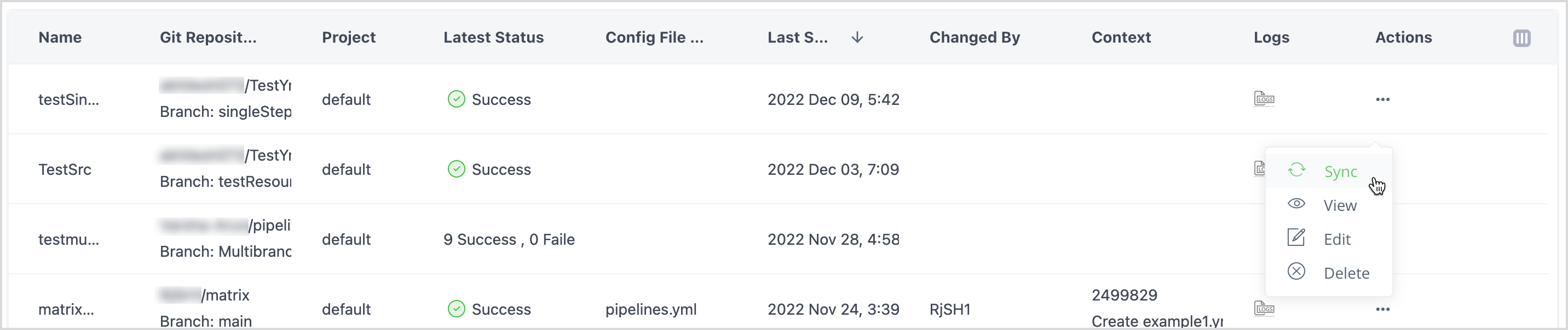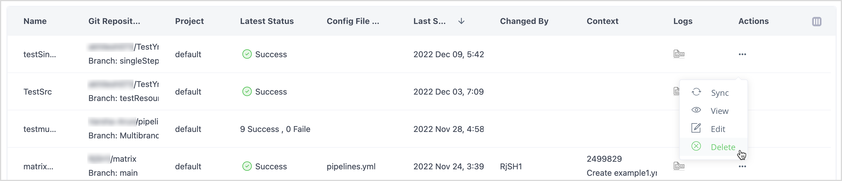 提交到存储库的所有管道配置文件将自动加载到JFrog管道中,并且该源中定义的所有管道都列在管道列表中。