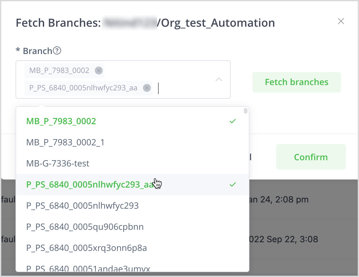 或 - 单击获取分支按钮,尝试根据配置的SCM集成和存储库自动获取所有分支。