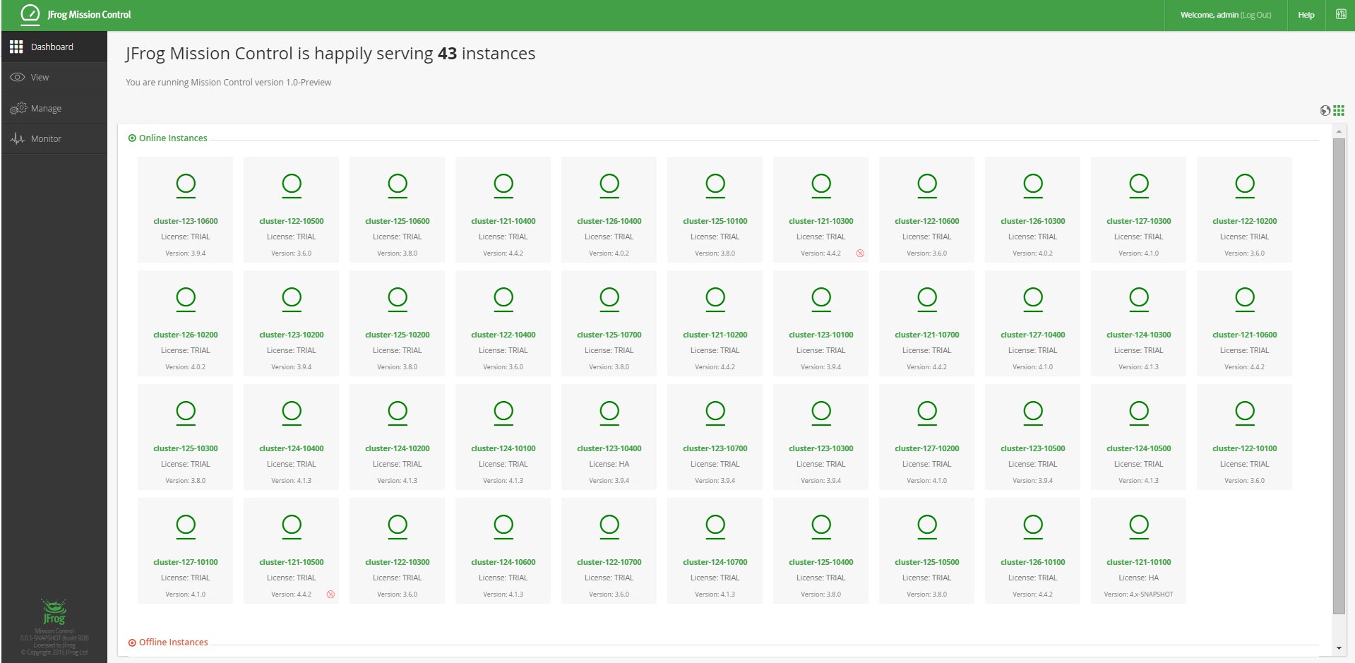 - 视图:获取您控制下的所有Artifactory实例的详细信息