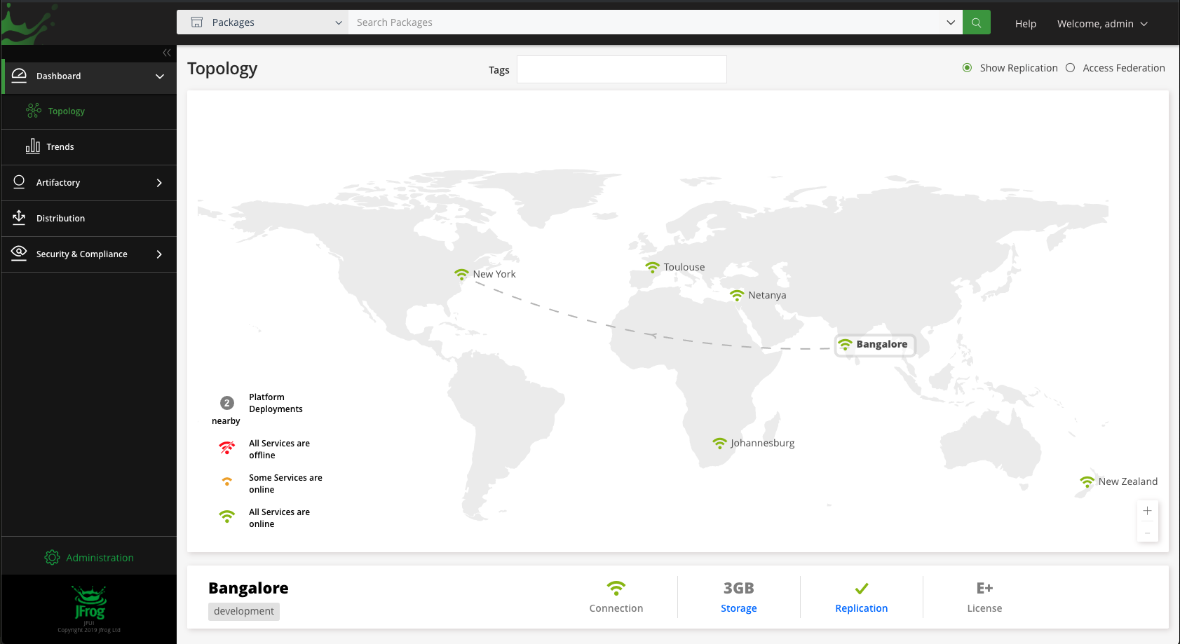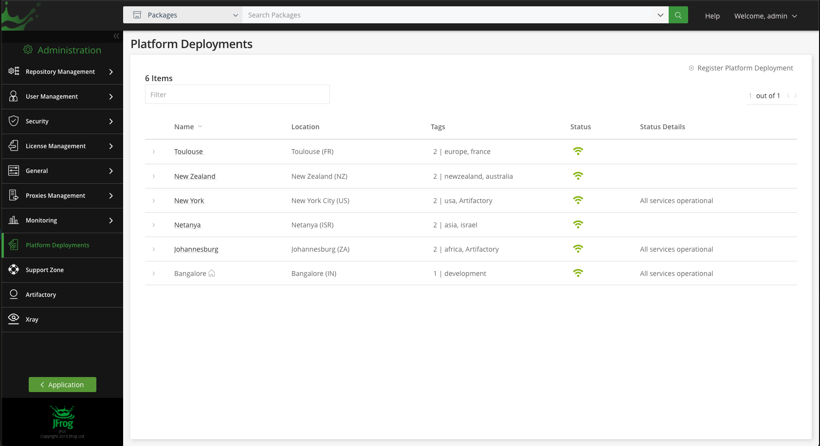 JFrog Mission Control is designed to be your single access point for managing multipleJFrog Platform Deployments (JPD), that contain JFrog services of Artifactory, Xray, Edge, and Distribution.