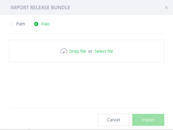 导入发布包对话框打开。 - 您可以从选定的路径中选择文件,也可以直接在该区域中放置文件。