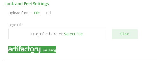 在Look and Feel Settings中,您可以配置Artifactory在屏幕的左上角显示您的公司标志,并自定义页脚文本。