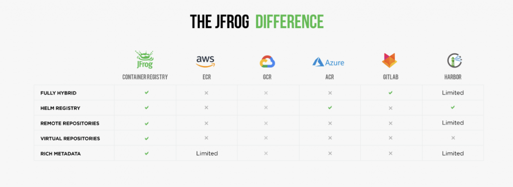 这使得JFrog容器注册表成为完全混合基础设施的为数不多的选择之一。而且它是免费使用的——不需要购买或获得许可证——无论你选择在哪里运行它。我们的基于云的解决方案也提供一个免费的层,尽管您的使用可能会受到云服务提供商的消费和传输费用的限制。