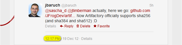 今天早上(~以色列内坦亚上午09:30),我在Twitter上发现了新的“#artifactory”搜索结果: