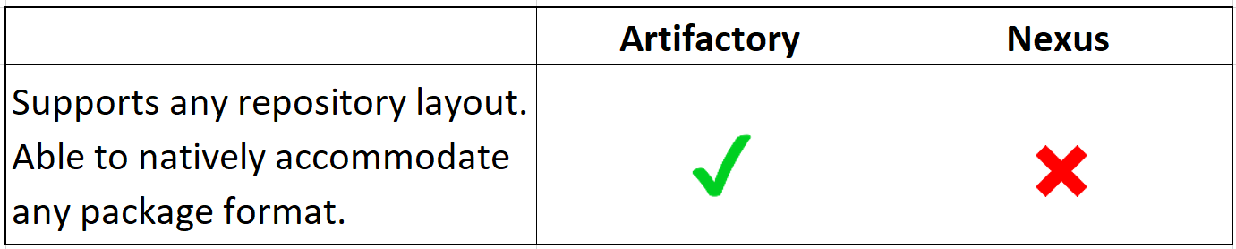当然,还有其他标准需要考虑。真正的普世性不仅仅是在包类型支持(27个以上),但包括自由选择CI和CD平台、DevOps工具、云提供商、大规模可扩展存储功能和支持的环境(本地/自管理、云、混合和多云)。重要的是要记住,当你寻找你今天的需求时,也要展望明天。您的存储库管理器将在您的DevOps生态系统中处于前沿和中心位置,因此您需要一个能够随着业务的增长继续满足您所有需求的存储库管理器。