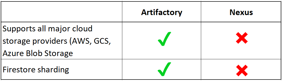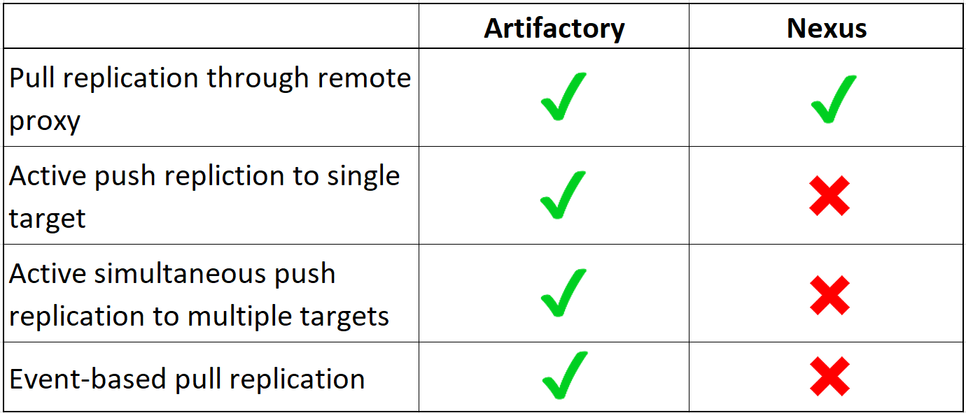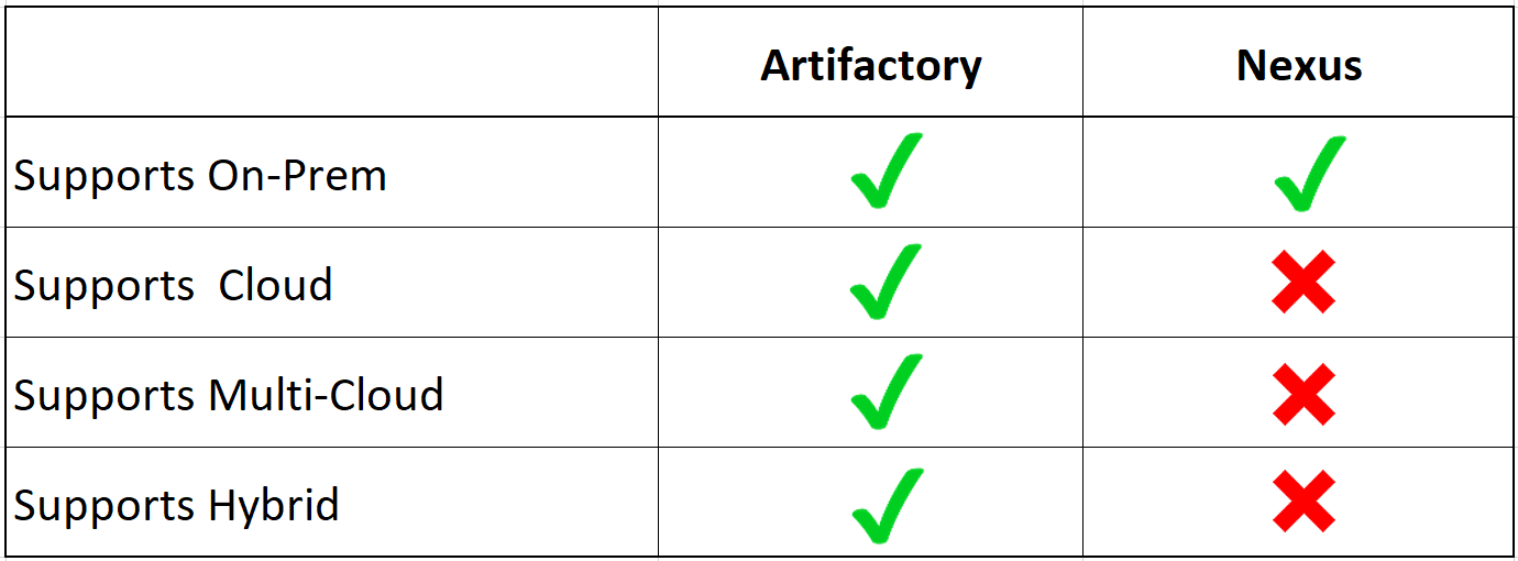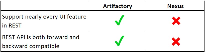 JFrog Artifactory Vs. Sonatype Nexus -集成矩阵