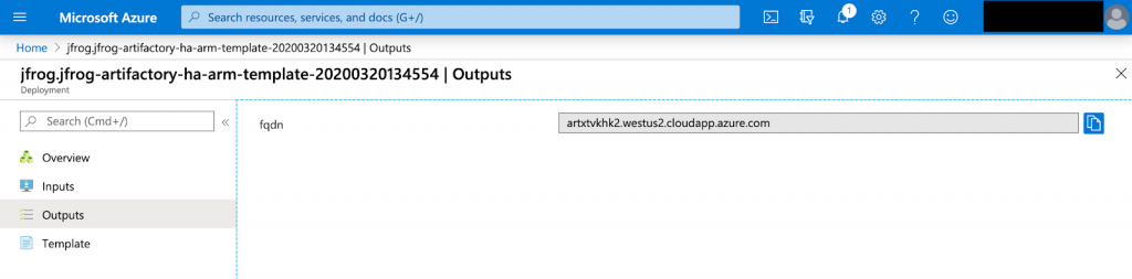 在侧栏中,选择输出参阅完全限定域名(FQDN),可用于访问JFrog平台界面和Artifactory:
