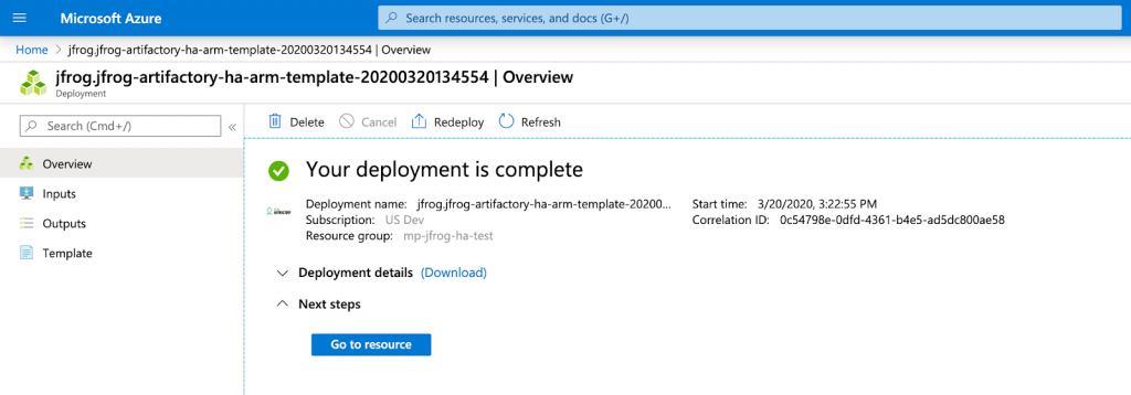 艰苦的工作完成了!如果你点了咖啡,应该马上就到。ARM模板从这里开始,将Artifactory及其组件部署到Azure VM中。