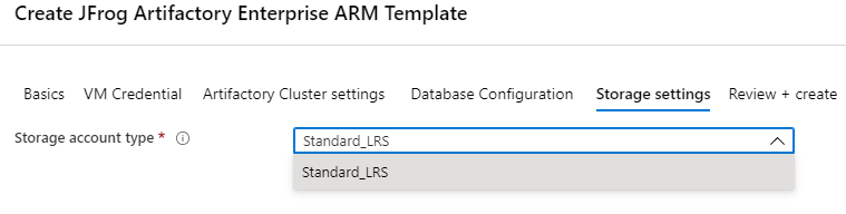 在该选项卡中,可以指定存储帐户类型。目前唯一可用的选项是使用本地冗余存储(LRS)的标准性能层。