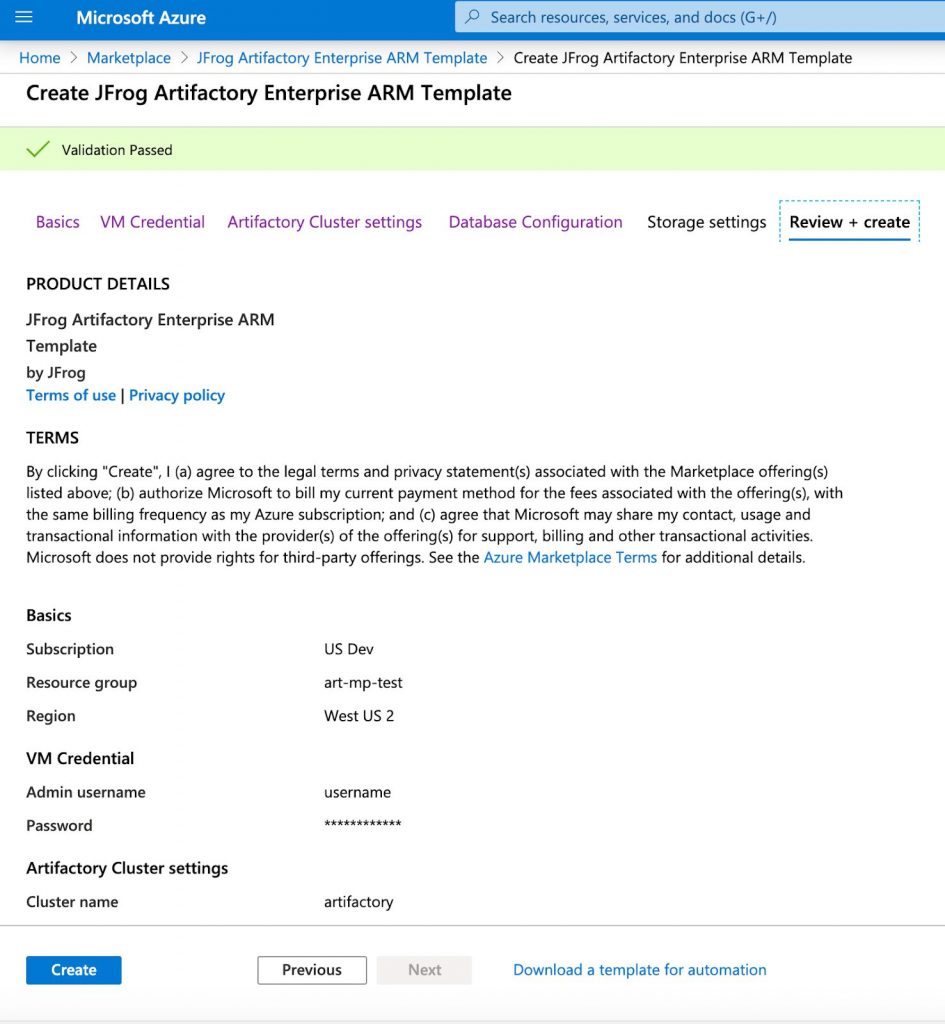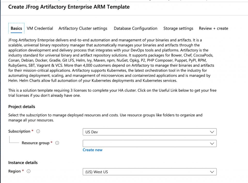 或者你可以直接导航到JFrog Artifactory企业ARM模板.