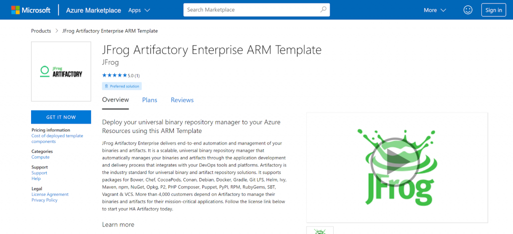 为了使这个过程快速可靠,我们创建了一个用于安装Artifactory Enterprise的Azure ARM模板,您可以在Azure市场中获得该模板。使用这个ARM模板,你可以得到你的Artifactory哈主力在五分钟或更短的时间内就能启动。