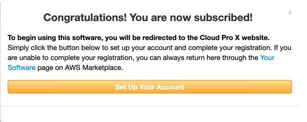 F或现有AWS市场客户,您可以通过现有AWS服务购买协议简化账单。不需要为你的部门申请新的采购订单;当您通过AWS市场注册时,Cloud Pro X的订阅费用将通过您的AWS帐户使用AWS积分支付。