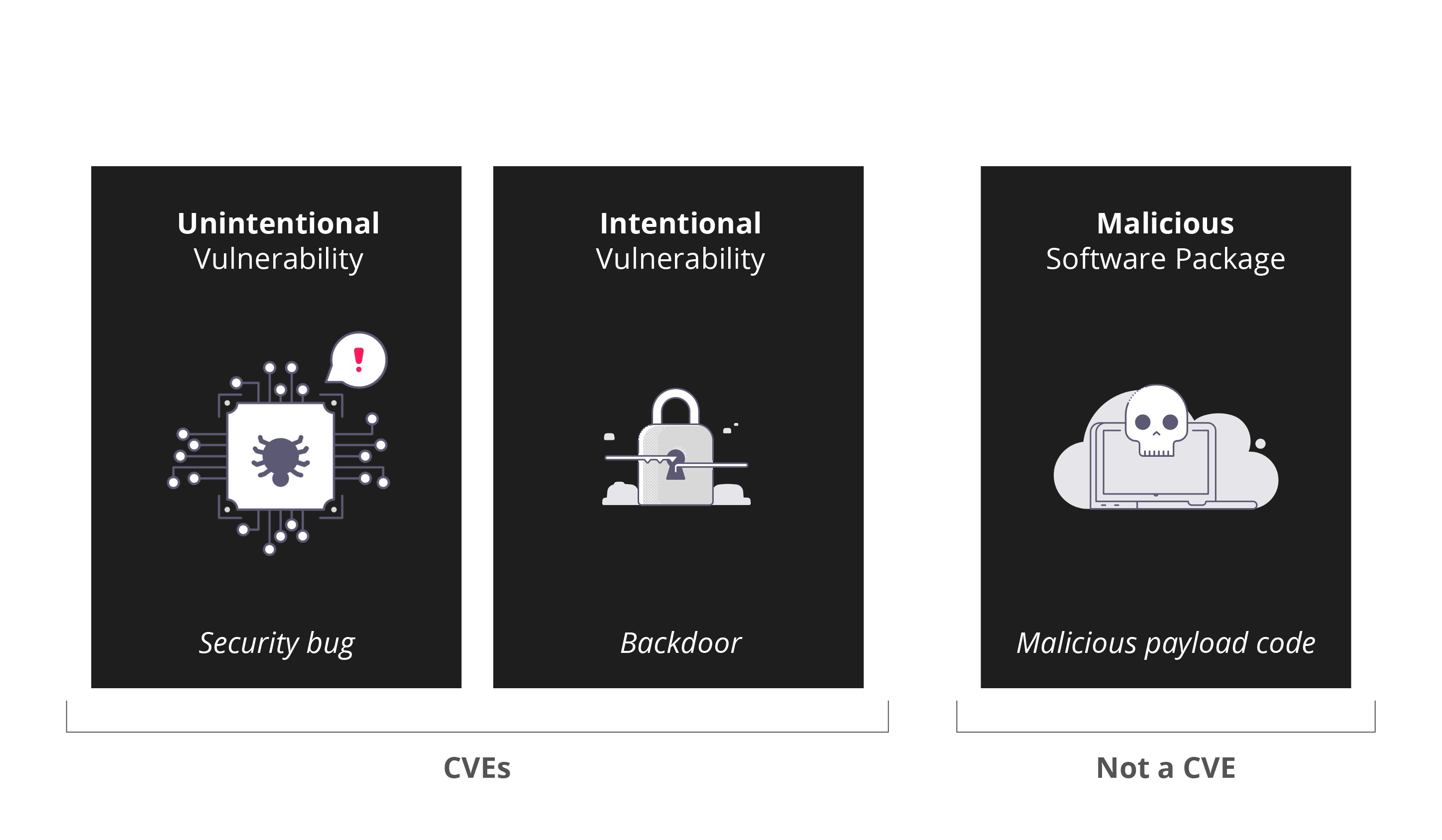 前两个威胁显示了有意或无意的软件漏洞。这些漏洞通常指的是软件缺陷,每个缺陷通常被分配一个公共漏洞和暴露(CVE)标识符,当它被公开和发布时。