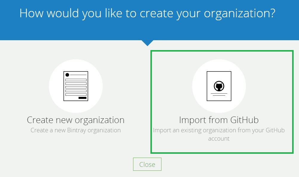 当在Bintray中创建一个新组织时,您现在可以看到一个从GitHub导入组织的新选项: