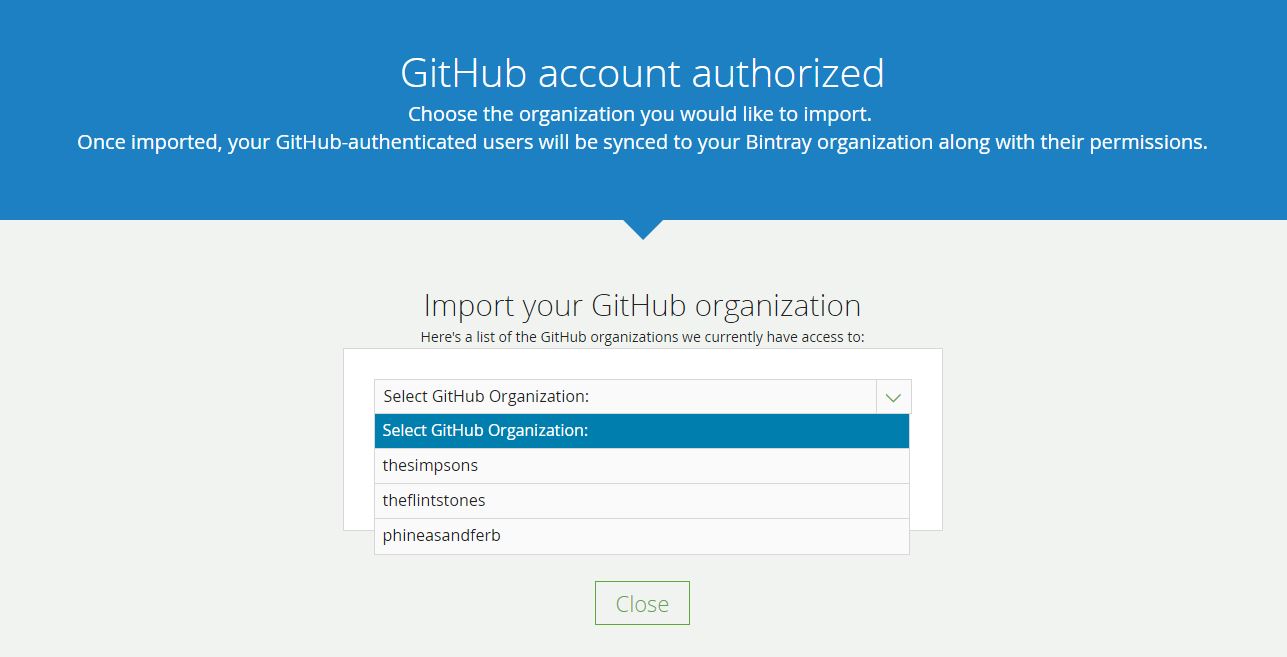 - 成员的权限也会被导入:GitHub组织中的“所有者”将是Bintray中的“管理员”,GitHub中的“成员”仍然是Bintray中的“成员”。