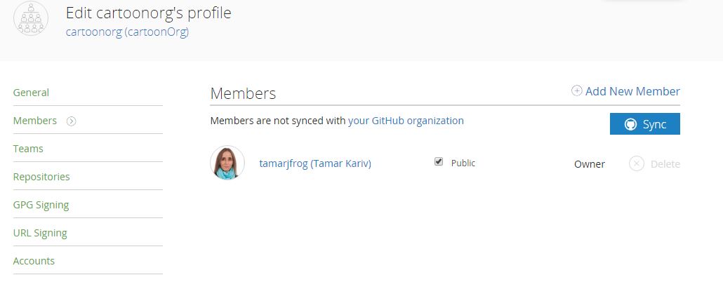 您可以保持成员列表与Github同步,因此将来添加到Github或从Github删除的任何成员都将自动在您的Bintray组织中更新。这省去了在Bintray和GitHub中维护成员的烦恼。您还可以禁用成员同步,使其成为一次性过程。可以随时启用或禁用成员同步。