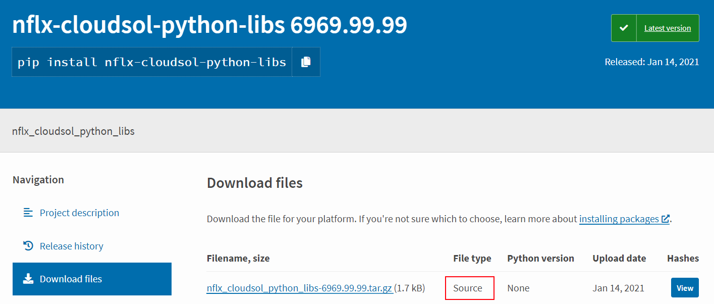 我们可以看到这个包是针对Netflix的,通过使用内部前缀nflx和使用非常高的版本6969.99.99取代任何真实的(内部)版本号。