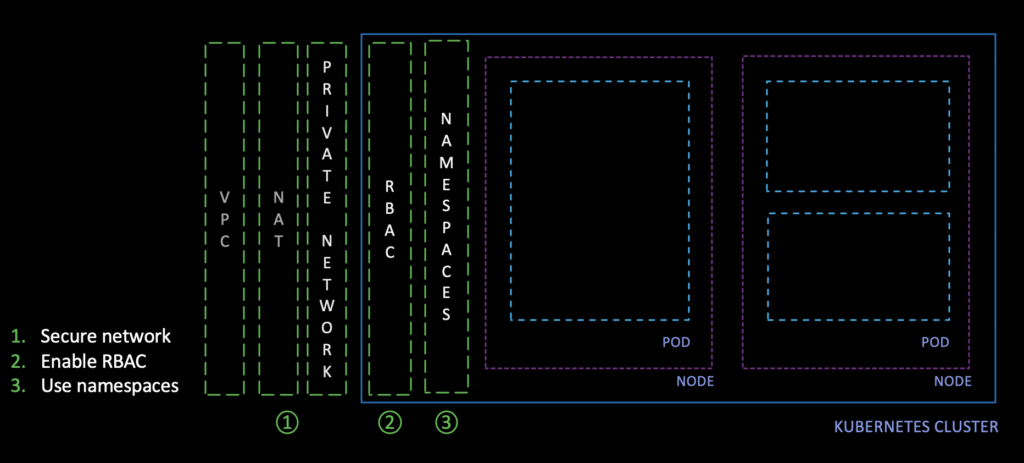 首先,您应该确保Kubernetes集群资源的所有入口点在它们的入口点是安全的。2022世界杯阿根廷预选赛赛程包括云工程、网络、集群、api服务器和命名空间,需要通过IAM、VPC、NAT、RBAC (role-based access control)等方式进行保护。启用此特性使您能够根据单个用户的角色设置策略来允许或拒绝关键操作。您应该通过使用受限制的名称空间来维护不同租户或用途之间的隔离,从而进一步确保这一点。