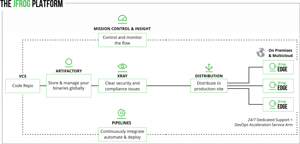 此外,JFrog平台的所有组件都是企业级的,可以部署在HA(高可用)配置中,通过一个集中管理的DevOps解决方案来支持数千个用户。作为一个能够在本地、云或混合平台上工作的平台,JFrog平台可以水平扩展以支持组织的增长。