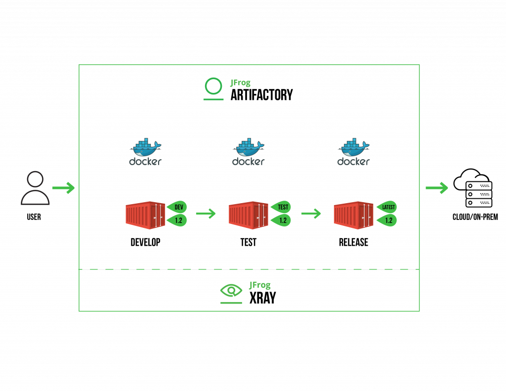 使用JFrog x射线扫描,以确保您的容器应用程序没有已知的安全漏洞,并且所有组件都符合组织的许可策略。使用Artifactory,您可以构建一个安全的、自动化的从代码到Docker的管道。