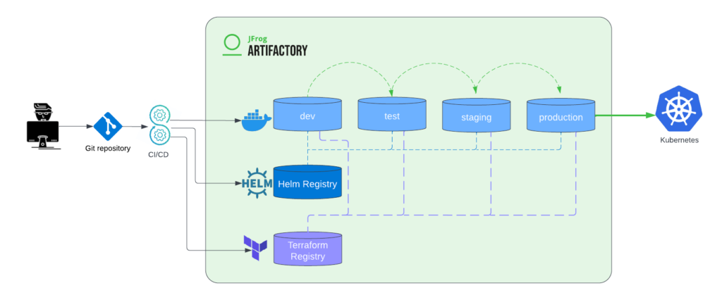そのためソフトウェアのサプラチェンの一部としてTerraformモジュル,プロバ▪▪ダ,リモ▪▪トステ▪トファ▪▪ルをArtifactoryに格納できるようになったことは素晴らしいニュ,スと言えます。これらのIaCファaaplルをDockerメ,ジや执掌图表と一緒にJFrogのリポジトリに格納することで,Artifactoryは包括的なKubernetesレジストリとして機能し,クラウドネイティブアプリの追跡可能でセキュアな信頼関係を通して配布できるようになります。